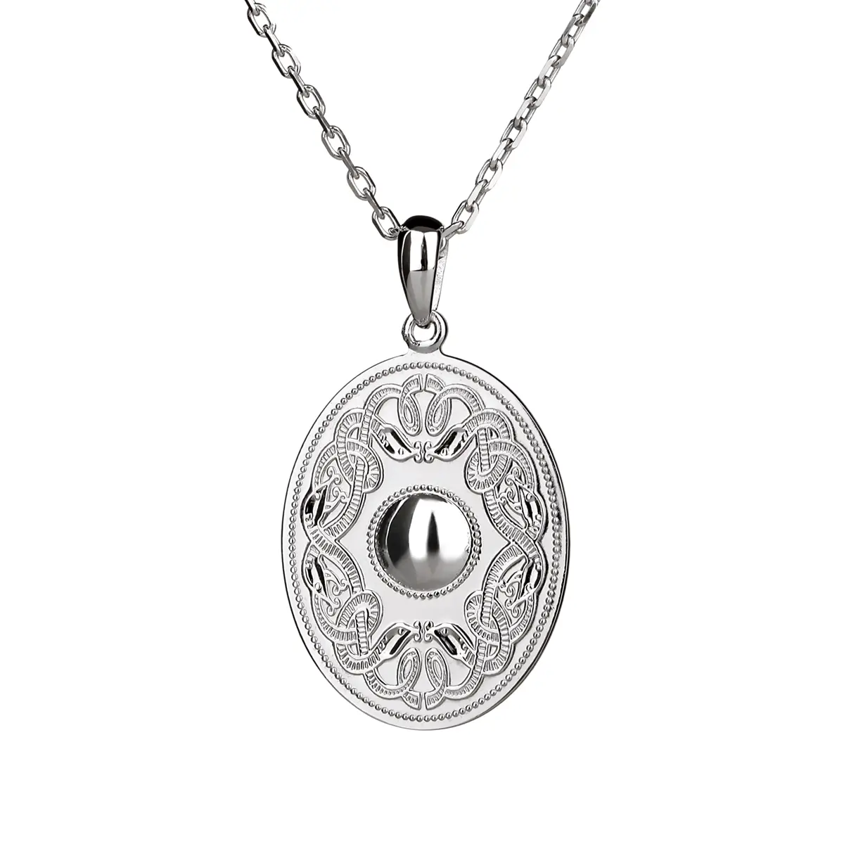 Die Triple Celtic Warrior Halskette besteht aus drei keltischen Scheiben, die vom Kelch von Ardagh inspiriert sind – einem bedeutenden Artefakt aus dem 8. Jahrhundert.