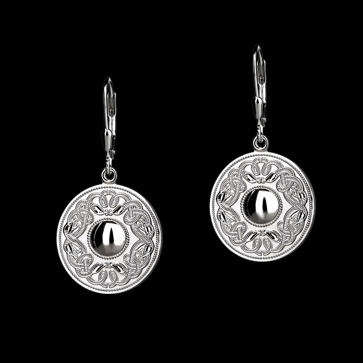 Celtic Warrior Ohrhänger aus 925er Sterlingsilber mit keltischem FiligranDiese keltischen Ohrhänger basieren auf dem filigranen Design des Ardagh-Kelchs, einem bedeutenden Artefakt aus dem 8. Jahrhundert. Die feinen keltischen Muster und stilisierten Schlangen orientieren sich an den Zoomorphics aus dem Book of Kells und verleihen den Ohrhängern eine besondere Symbolkraft.Gefertigt aus 925er Sterlingsilber, werden sie in Irland handgefertigt und im Assay Office im Dublin Castle gepunzt. Die Ohrhänger sind Teil der Celtic Warrior® Collection von Boru Jewellery, die von legendären keltischen Kriegern wie Chulaunn, Fionn Mac Cumhail und Queen Maeve inspiriert ist. Design basierend auf dem Goldfiligran des historischen Ardagh-KelchsFeine keltische Muster und stilisierte Schlangen im Stil der Zoomorphics Durchmesser je ca. 20 mm Material: 925er Sterlingsilber Verschluss mit praktischem Karabiner Handgefertigt in Irland – geprüft im Assay Office im Dublin Castle Lieferung in einer edlen Celtic Warrior® Schmuckbox