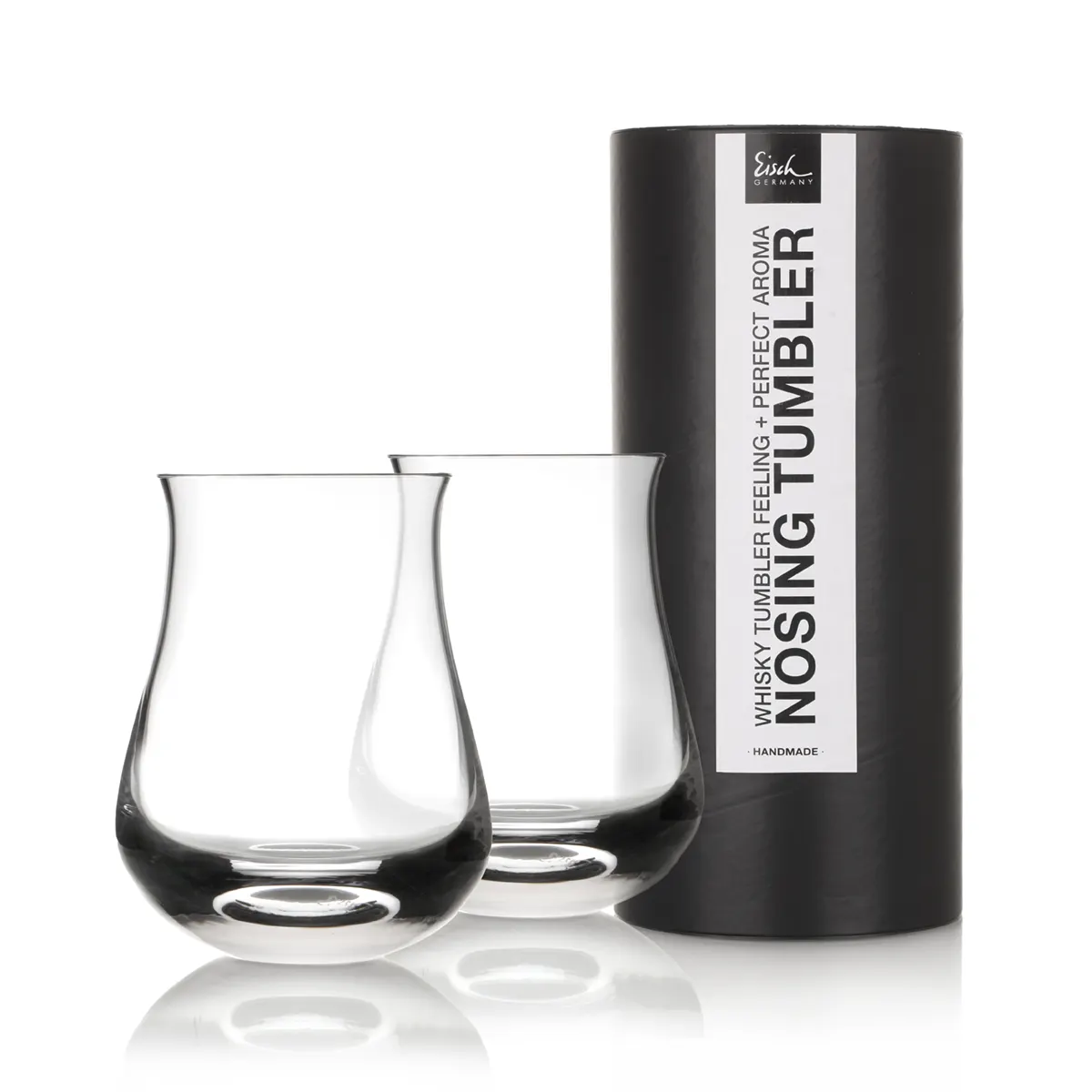 Zwei Whisky Nosing-Tumbler in GeschenkröhreHandgefertigt in Deutschland Die Form dieser mundgeblasenen Gläser verbindet die Vorteile eines klassischen Tumblers mit denen eines Tasting-Glases. Der bauchige Bereich schafft dem Whisky ausreichend Oberfläche, um seine Aromen zu entfalten, wonach sie durch die verjüngte Öffnung direkt zur Nase gelangen können. Das dicke Glas und der massive Boden verhindern, dass der Whisky seine Temperatur zu schnell verändert. Höhe: ca. 115 mm Durchmesser am Trinkrand: ca. 70 mm Durchmesser am Bauch: ca. 90 mm Inhalt: 300 ml Material: Kristallglas mundgeblasen Spülmaschinengeeignet Die Lieferung erfolgt in einer schicken Geschenkröhre