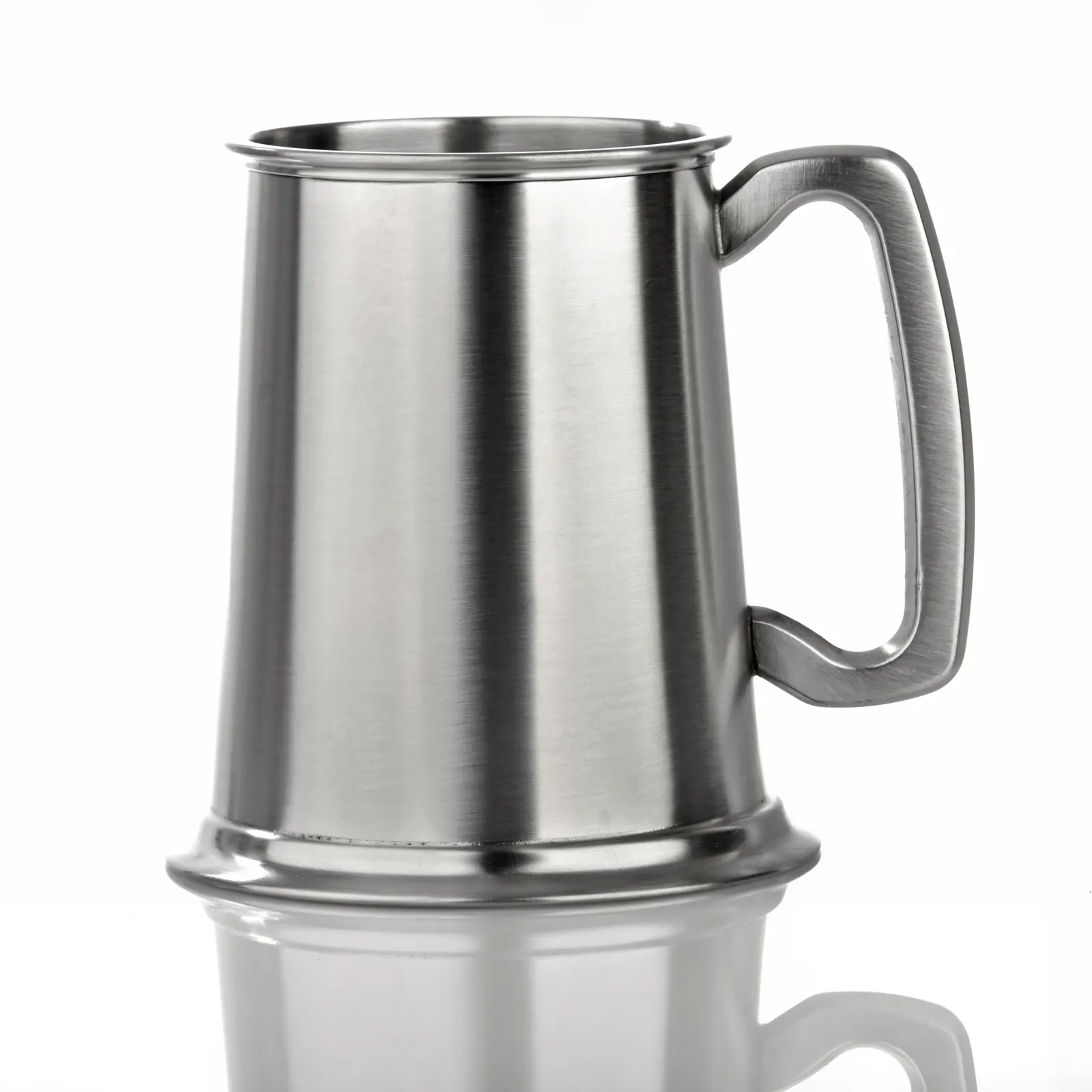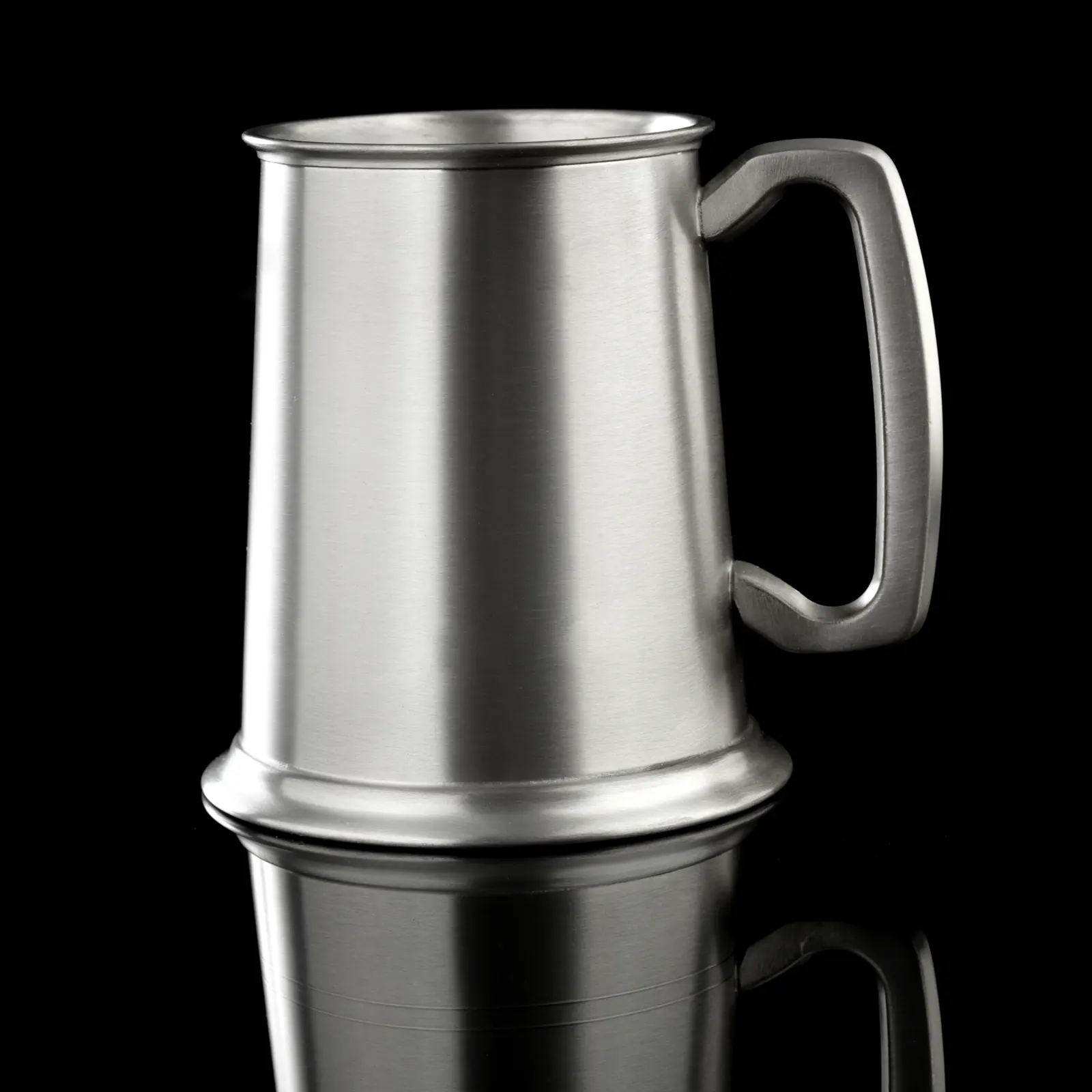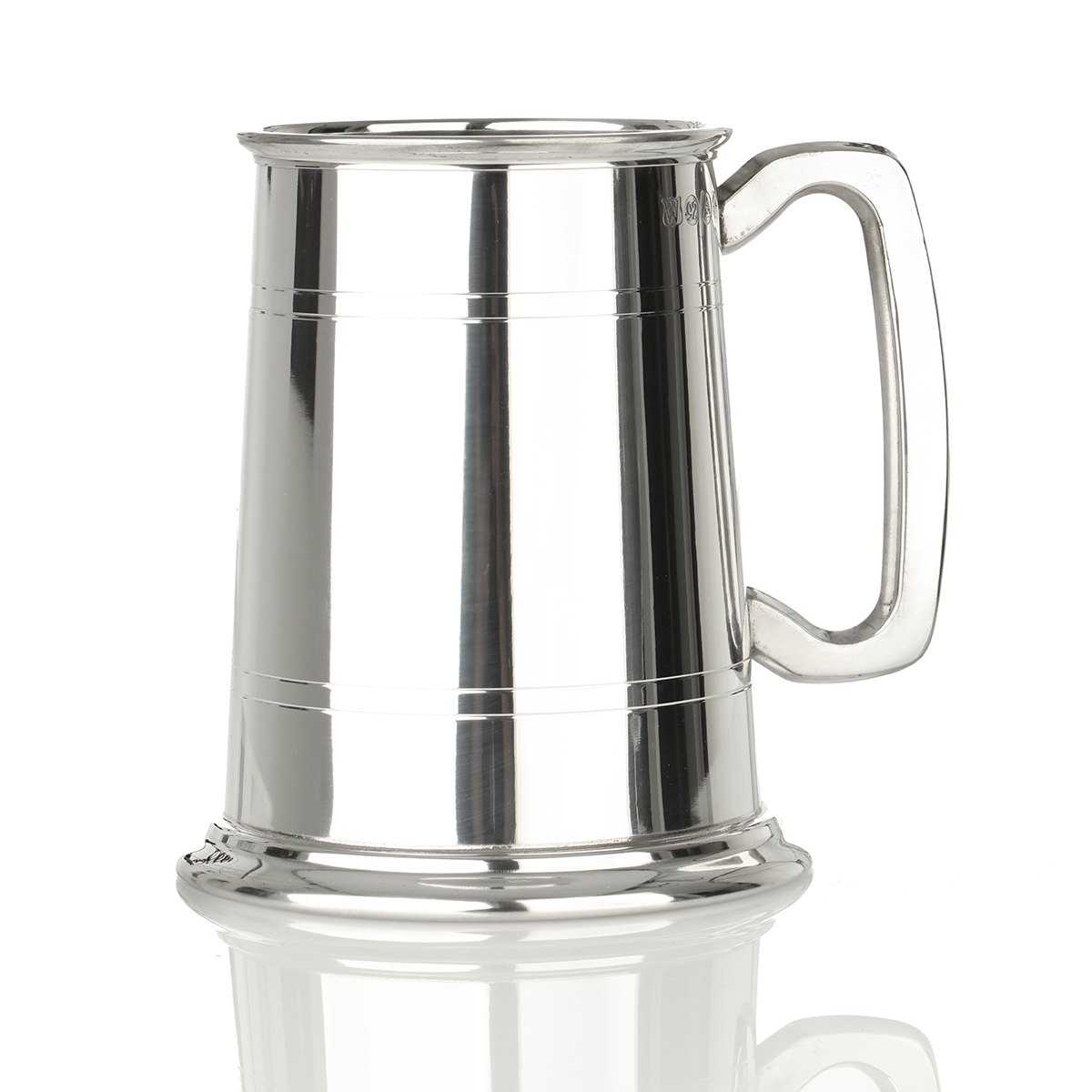 Medieval Tankard - Handgefertigter Mittelalter Bierkrug aus England Der „Medieval Tankard“ bringt echtes Tavernen-Feeling auf den Tisch. Gefertigt aus Zinn im matten Antik-Finish und versehen mit zwei gravierten Doppelstreifen, erinnert dieser Bierkrug an die Trinkgefäße aus der Zeit der Tudors. Die Oberfläche ist bewusst matt gehalten und verleiht dem Krug eine gealterte, authentische Optik. Handgefertigt in Sheffield nach traditionellen Methoden und unter den Vorgaben der Association of British Pewter Craftsmen. Die Touchmarks des Herstellers sind im Boden eingeprägt und garantieren Qualität sowie Herkunft. Ein passender Begleiter für das nächste Lagerfeuer, den Mittelaltermarkt oder einfach für dein eigenes Pub zu Hause. Inhalt: ca. 1 englischer Pint (568 ml) Höhe: ca. 125 mm Durchmesser am Boden: ca. 115 mm Durchmesser am oberen Rand: ca. 90 mm Gewicht: ca. 250 g Material: gebürsteter Zinn (Pewter) Lebensmittelecht Handgefertigt in England Im Boden sind die Touchmarks des Herstellers eingeprägt