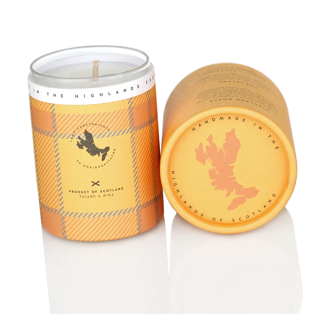 Highland Whisky Duftkerze aus Schottland Bring den Duft der bekanntesten Whisky-Regionen Schottlands in dein Zuhause. Diese hochwertigen Duftkerzen werden in Schottland von Hand gegossen und bestehen aus 100 % pflanzlichem Sojawachs. Jede Variante greift Aromen auf, die typisch für die jeweilige Whisky-Region sind – von torfig und salzig bis fruchtig und würzig. Inhalt: 250 ml Maße: 90 x 80 mm Brenndauer: ca. 45 Stunden Material: 100 % Sojawachs Scotch Whisky: Heidekraut, Zedernholz, Moos Speyside (Grün): Apfel, Birne, Zimt Highland (Rot): Heidekraut, Obstkuchen, Apfel Lowland (Weiß): Frisches Gras, Muskatnuss, Geißblatt Islay (Blau): Torf, Eiche, Waldblumen Campbeltown (Schwarz): Meersalz, Holzrauch