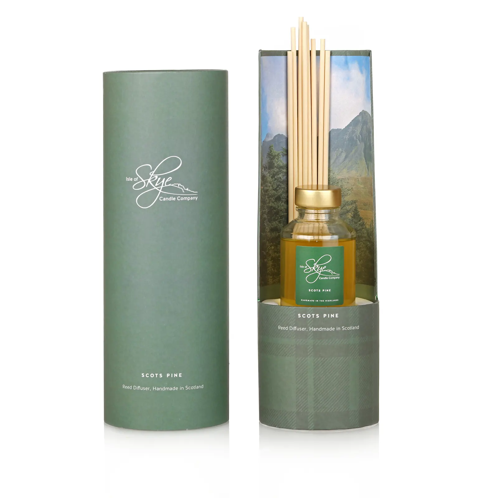 Schottische PinieEin frischer und holziger Duft, der an einen Waldspaziergang in Schottland erinnertDer frische Duft von Pinie, Sumpfmyrte und Rosmarin erinnert an einen Spaziergang durch einen dichten Wald.Die Kopfnoten von Pfefferminze, Orange und Patchouli sorgen für eine belebende und erfrischende Note.Die weichen und beruhigenden Noten von Pinie, Sumpfmyrte und Rosmarin verleihen dem Duft eine warme und gemütliche Note, die perfekt für einen Abend am Kamin ist.Die Scots Pine Kerze erzeugt ein weiches und warmes Aroma, das sofort für Gemütlichkeit sorgt. Duftrichtung: Frisch, holzigDuftnoten: Pinie, Sumpfmyrte, Rosmarin, etwas Pfefferminze, Orange und Patchouli Duftdauer: ca. 10 Wochen Füllmenge: 100 ml Durchmesser der Flasche: 52 mm, Höhe: 105 mmStäbe: Schilfrohr, Länge je 25 cm Die Scottish Collection von "Isle of Skye Candles" ist inspiriert von den rauen schottischen Highlands. Die Düfte, die dort kreiert werden, fangen die verschiedenen schottischen Jahreszeiten ein und sind so unverwechselbar wie die atemberaubenden Landschaften, die sie inspirieren. Von sanften, frischen Aromen bis hin zu tiefen und reichhaltigen Düften.