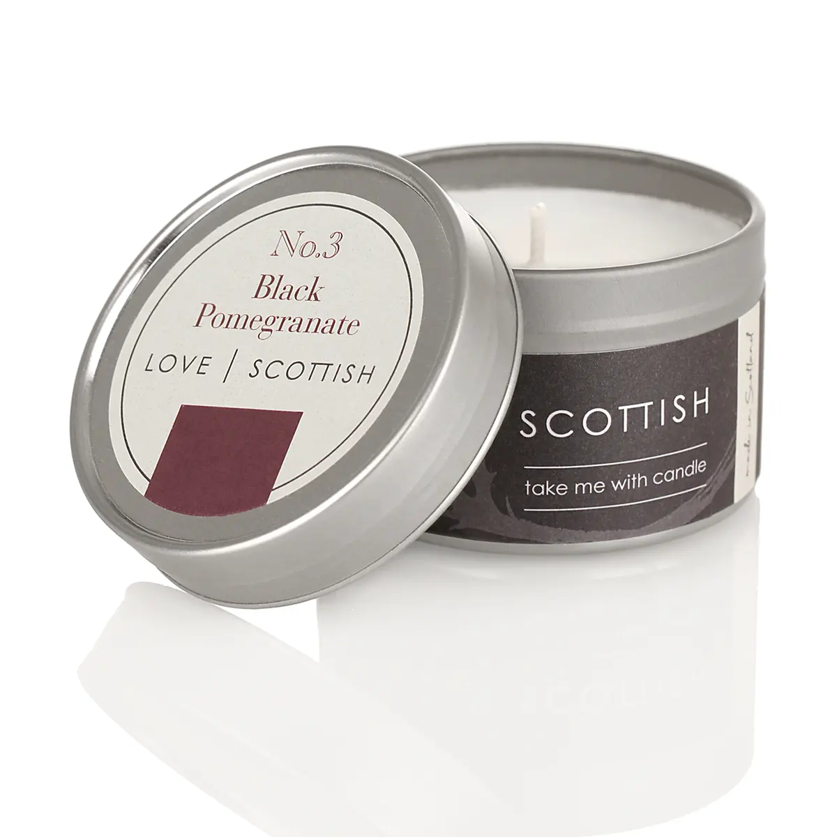 Erleben Sie den Zauber Schottlands mit unserer exquisiten "Love Scottish" Black Pomegranate Duftkerze. Diese handgegossene Kerze aus 100% reinem Naturwachs wurde in Schottland gefertigt. Mit einem betörenden Duft, der Ihren Raum in einen Ort der Entspannung und des Genusses verwandelt, ist diese Kerze eine Bereicherung für jeden Raum. Travel Tin - Die "Take me with you" Dosen werden von Hand aus unserem hochwertigen natürlichen Kokoswachs gegossenHergestellt in Schottland: Unsere "Love Scottish" Duftkerze wird von erfahrenen Handwerkern in Schottland sorgfältig von Hand gegossen, um höchste Qualität und Authentizität sicherzustellen.100% Vegan: Wir sind stolz darauf, dass unsere Kerzen frei von tierischen Produkten sind und nach ethischen Prinzipien hergestellt werden.Kokoswachs: Unsere Kerze besteht aus umweltfreundlichem Kokoswachs, das sauber und gleichmäßig verbrennt, ohne schädliche Rückstände zu hinterlassen.Verlockende Duftmischung: Genießen Sie den verführerischen Duft einer fruchtigen Mischung aus Granatapfel, begleitet von einem Hauch von saftiger Pflaume, warmem Patchouli und beruhigendem Zedernholz.Langanhaltender Duft: Diese Kerze verströmt ihren wundervollen Duft, ob sie brennt oder nicht, und schafft so eine einladende Atmosphäre, die jeden Raum belebt. Größe Durchmesser: 60 mm Höhe: 45 mm Inhalt: 100 g Brenndauer: 24 h Farbe: Naturweiß, ohne Farbstoffe