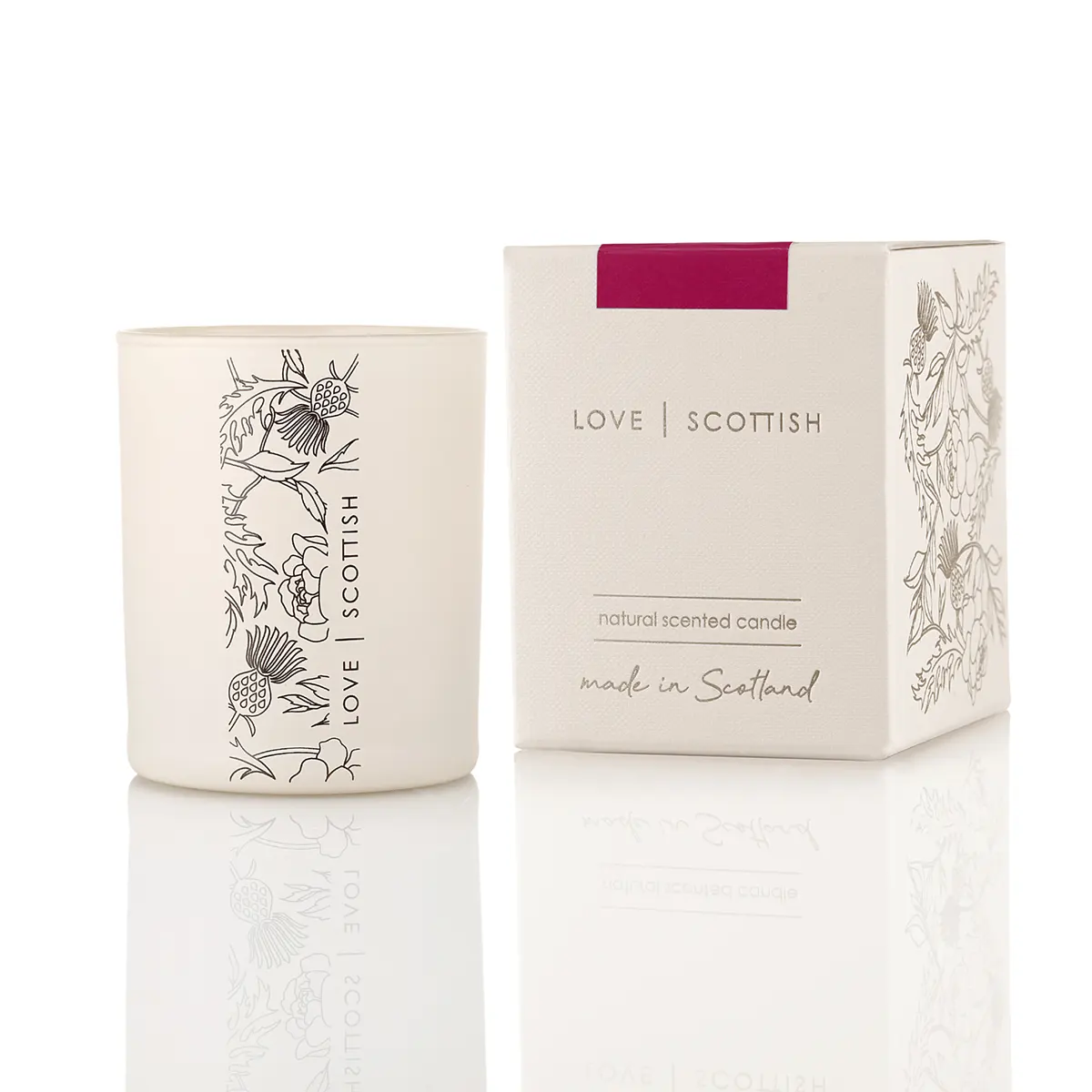 Willkommen in den Rosengärten Schottlands. Mit unserer "Love Scottish Scottish Rose" Duftkerze. Handgefertigt in Schottland aus 100% reinem, umweltfreundlichem Sojawachs, entführt Sie diese Kerze in eine Welt der Entspannung und natürlichen Frische, die das ganze Jahr über genossen werden kann. Hergestellt in Schottland: Unsere "Love Scottish" Duftkerze wird von erfahrenen Handwerkern in Schottland mit Hingabe handgegossen, um höchste Qualität und Authentizität sicherzustellen.100% Vegan: Wir sind stolz darauf, dass unsere Kerzen frei von tierischen Produkten sind und nach den Grundsätzen ethischen Handelns hergestellt werden. Natürliches Sojawachs: Unser Naturwachs wird aus Sojabohnen gewonnen und ist eine umweltfreundliche Alternative zu Paraffin. Es verbrennt sauber und gleichmäßig, ohne schädliche Rückstände.Wundervoll blumig: Die Scottish Rose Duftkerze begeistert mit einem betörenden Blumenduft, der an einen duftenden Rosengarten erinnert. Beginnend mit Pfingstrose und rotem Apfel, gefolgt von herzhaften Noten von Rose, Jasmin und Nelke.Langanhaltender Duft: Egal, ob die Kerze brennt oder nicht, sie füllt den Raum mit einem herrlichen Duft, der Ihre Sinne verzaubert. Medium Durchmesser: 70 mm Höhe: 85 mm Inhalt: 160 g Brenndauer: 30 h Farbe: Naturweiß, ohne Farbstoffe Large Durchmesser: 80 mm Höhe: 92 mm Inhalt: 250 g Brenndauer: 40 h Farbe: Naturweiß, ohne FarbstoffeDie Lieferung erfolgt in einer edlen Geschenkbox