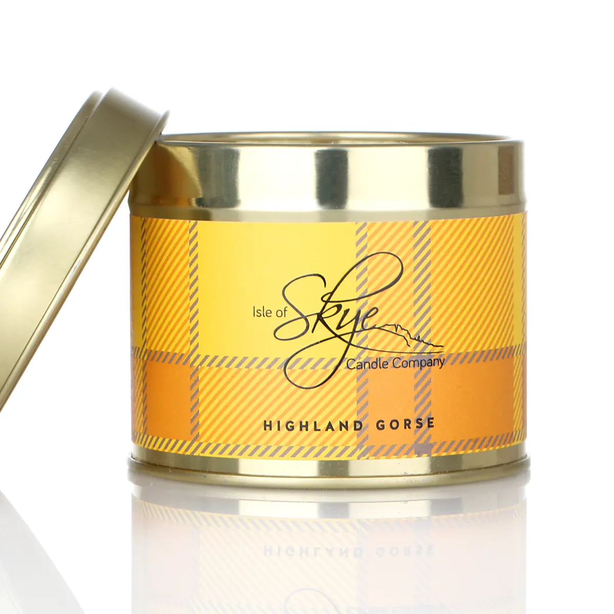 Duftkerze im Travel ContainerHighland Gorse - Frischer Frühlingsduft aus Schottland Hol Dir den Duft des Highland-Frühlings ins Haus - mit unserem frischen Ginsterduft. Er kombiniert warme, süße, balsamische, blumige und grüne Kräuternoten, die auf einer Basis aus schottischer Pinie, Zedernholz und Amber ruhen. Man sagt, wenn der Ginster nicht blüht, ist das Küssen aus der Mode. Der Grund für dieses Sprichwort ist, dass irgendwo in Schottland immer ein Ginsterstrauch blüht, Küssen wird also nie aus der Mode kommen. Zwar blüht der Ginster immer irgendwo, aber im Frühling kommt er mit seiner Lebendigkeit und seinem herrlichen Kokosnussaroma erst richtig zur Geltung. Die Art und Weise, wie er die Landschaft mit seiner sonnengelben Farbe erhellt, ist ein sofortiger Stimmungsaufheller.Duftrichtung: Frisch, floral, KräuterDuftnoten: Ginster, schottische Pinie, Zedernholz und AmberBrenndauer: 45 StundenDurchmesser: 90 mm, Höhe: 55 mmMaterial: 100 % natürliches SojawachsMit LeinendochtHandgefertigt in Schottland Die Scottish Collection von "Isle of Skye Candles" ist inspiriert von den rauen schottischen Highlands. Die Düfte, die dort kreiert werden, fangen die verschiedenen schottischen Jahreszeiten ein und sind so unverwechselbar wie die atemberaubenden Landschaften, die sie inspirieren. Von sanften, frischen Aromen bis hin zu tiefen und reichhaltigen Düften.