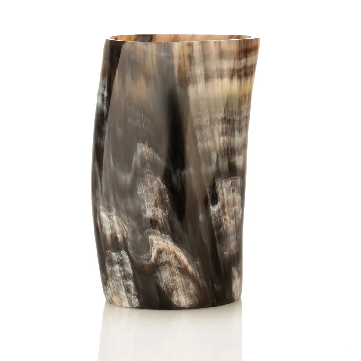 Polierter Wikinger Hornbecher aus echtem Rinderhorn Dieser Wikinger Hornbecher verbindet authentischen Charme mit traditioneller Handwerkskunst. Gefertigt aus hochwertigem Rinderhorn, wird er in einer traditionellen Hornschleiferei in Deutschland sorgfältig von Hand hergestellt. Der Becher ist hygienisch gereinigt, desinfiziert und innen mit einer lebensmittelechten, geschmacksneutralen Beschichtung versiegelt – so eignet er sich bestens zum sicheren Trinken. Die glänzend polierte Außenseite betont die einzigartige natürliche Struktur des Horns und macht jeden Becher zu einem besonderen Blickfang. Geliefert wird der Wikinger Hornbecher stilecht in einem praktischen Leinenbeutel. Höhe: ca. 15 cm inhalt: ca. 0,5 Liter Inkl. Leinenbeutel Handgefertigt in Deutschland