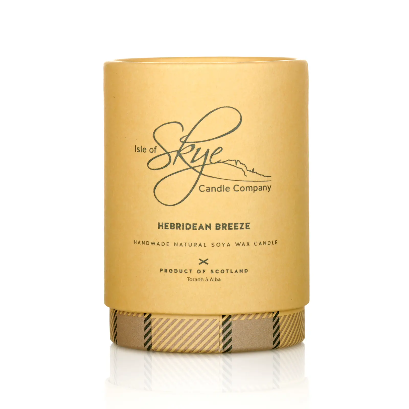 Hebridean Breeze - Die raue und ungezähmte Schönheit der schottischen Inseln Der Duft von Hebridean Breeze fängt die frische Meeresbrise, die durch die Dünen weht, ein. Kräftige Noten von Brennnessel und Seetang verbinden sich harmonisch mit den sanften Aromen von Strandhafer und Strandveronika. Ein Duft, der dich an die unberührten, windgepeitschten Strände der Hebriden entführt, umgeben von der wilden und endlosen Natur. Die Kerze wird in einer hochwertigen Geschenkröhre geliefert. Die Röhre ist mit einem farblich zum Duft passenden Karomuster bedruckt, inspiriert von traditionellen schottischen Tartans. Duftrichtung: belebend, maritim-frisch Duftnoten: Seetang, Strandveronika, Brenndauer: 45 StundenDurchmesser: 90 mm, Höhe: 55 mmMaterial: 100 % natürliches Sojawachs Mit LeinendochtHandgefertigt in Schottland Scottish Collection Diese Kollektion ist inspiriert von den rauen schottischen Highlands. Die Düfte der Isle Of Skye Candle Company fangen die charakteristischen schottischen Jahreszeiten ein und sind ebenso unverwechselbar wie die atemberaubenden Landschaften, die sie inspirieren. on den frischen Düften des Frühlings bis hin zu den rauchigen Aromen des Herbstes – jeder Duft erzählt eine Geschichte der schottischen Landschaft.