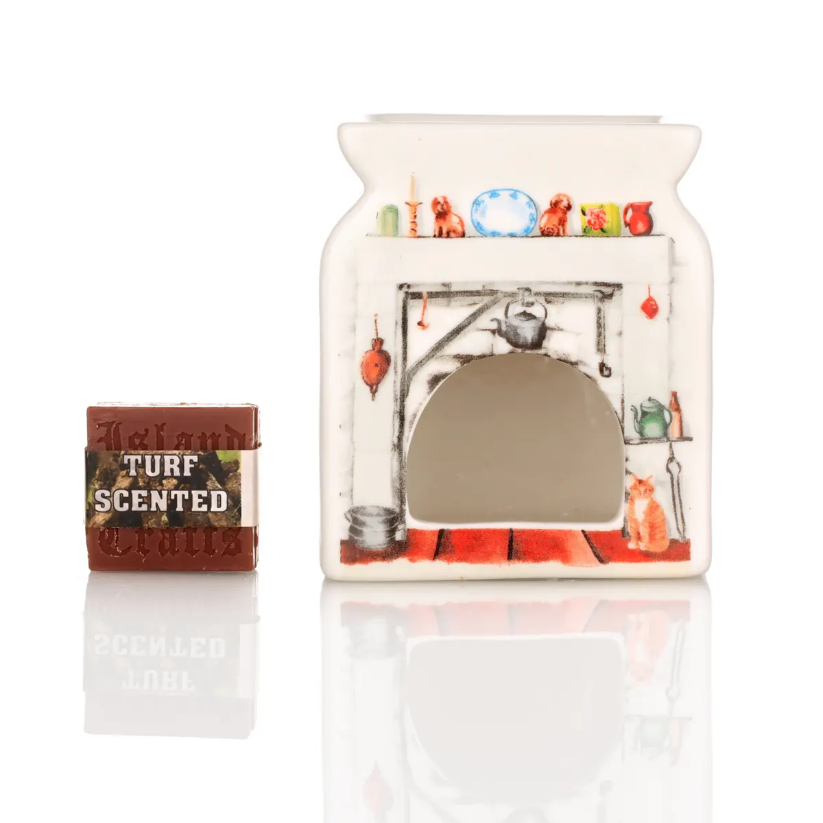 Ein niedlicher Keramikbrenner aus Irland, im Stil einer alten, irischen Feuerstelle. Der Brenner ist konzipiert für duftende Wachsschmelzen, einschließlich unserer aromatischen Torf-Wachsschmelzen, kann aber auch zur Verdampfung von ätherischen Ölen genutzt werden. Der einzigartige Duft eines irischen Kaminfeuers, ein reichhaltiges und beruhigendes, erdiges Aroma durchdrungen von Torf und floralen Kräutern. Diese Darstellung des süßen, erdigen und rauchigen Duftes von Torf und Moos, in Kombination mit Zedernholz, einem Hauch von sinnlich-würzigen Holznoten, Vetivergras, Rose und Patchouli, erweckt Erinnerungen an einen abendlichen Aufenthalt in einem irischen Cottage. Träumen Sie von den rauchigen Aromen, die am Abend über die Felder Irlands ziehen, an eine zärtliche Umarmung und gemeinsame Tassen Tee mit den Lieben, die um den Herd, das Herz des Hauses und das Zentrum der Wärme, versammelt sind. Lieferumfang: 1 x Keramik-Wachsbrenner, ca. 9x7 cm 4 x Schmelzwachs mit Torfaroma Nutzung von Schmelzwachs: Legen Sie eine Portion Schmelzwachs in den oberen Behälter des Aromabrenners. Entzünden Sie ein Teelicht und platzieren Sie es unten im Brenner. Nun schmilzt das Wachs langsam und setzt seine Aromen frei. Nutzung von ätherischen Ölen: Füllen Sie den oberen Behälter des Aromabrenners mit Wasser. Geben Sie ein paar Tropfen ätherisches Öl in das Wasser. Zünden Sie ein Teelicht an und positionieren Sie es unten im Boden des Aromabrenners.