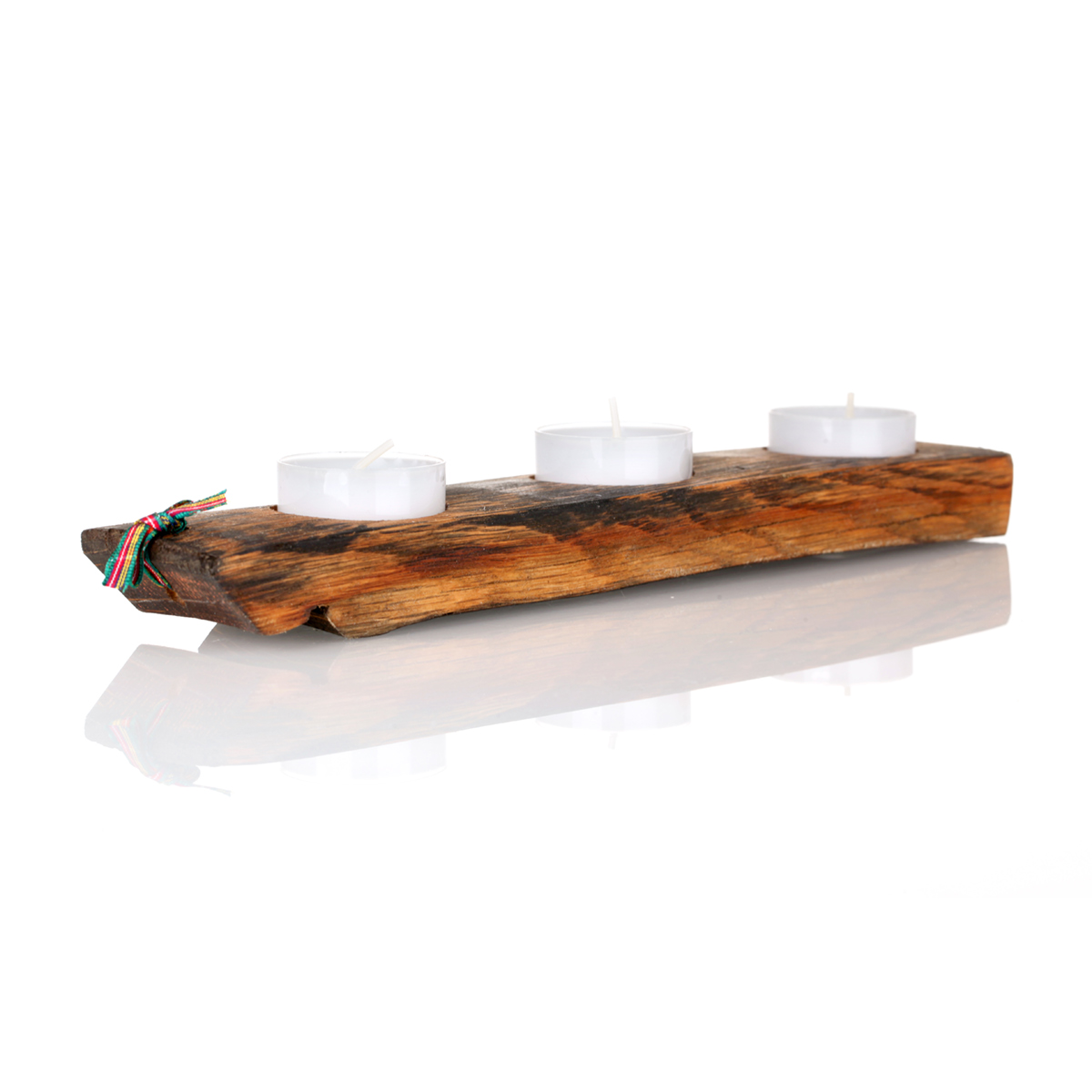 Whisky Fass Flight Tray Teelichthalter aus Eiche mit 3 Teelichtern – handgefertigt in Schottland Dieser Teelichthalter wird aus der Daube eines recycelten Whiskyfasses aus schottischer Eiche gefertigt. Jede Leiste erzählt durch Farbe, Struktur und Duft die Geschichte ihrer Zeit in schottischen Destillerien. Der Flight Tray ist ca. 30 cm lang und 8 cm breit, mit drei Aussparungen für handelsübliche Teelichter von etwa 4 cm Durchmesser. Jedes Stück ist ein Unikat – Größe, Form, Farbe und das Tweedmuster können variieren. Die Lieferung erfolgt inklusive drei Teelichtern. Handgefertigt aus Eichenholz alter Whiskyfässer Drei Aussparungen für handelsübliche Teelichter (ca. 4 cm Durchmesser) Maße ca. 30 x 8 cm Individuelle Maserung, Farbe und Tweedmuster Unikat aus schottischer Handarbeit
